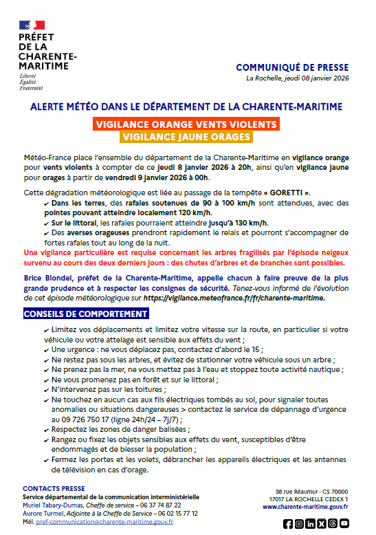 Vigilance ORANGE vents violents