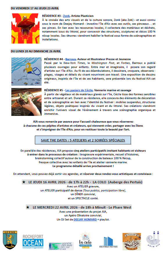 du 13 au 26 avril à l’île d’Aix !