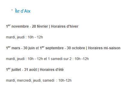 Vous pouvez déjà programmer vos rendez-vous au 05 46 84 49 49, n’oubliez pas de préciser au secrétariat que vous souhaitez un rendez-vous à l’Ile d’Aix.