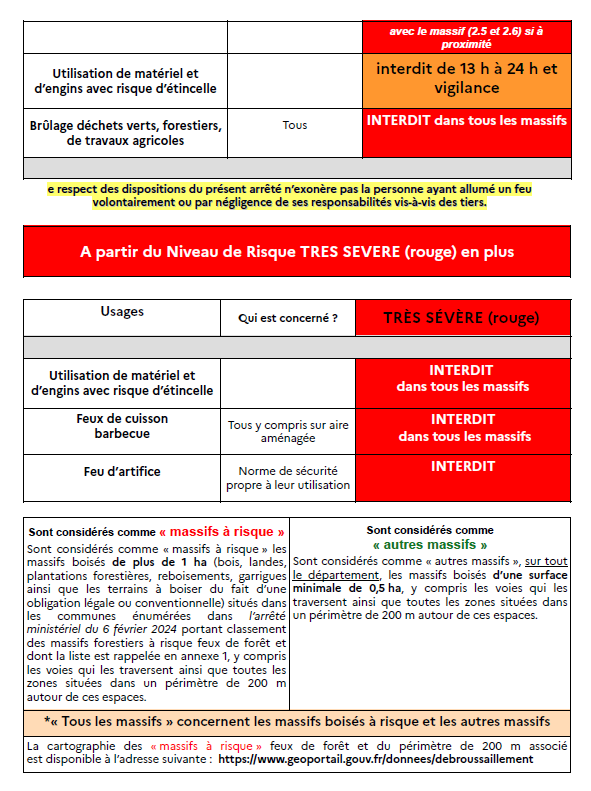 Aujourd’hui, le 21 avril 2026, l’ensemble du département est placé en niveau « SÉVÈRE ». . Tout les brulages sont donc interdits, même ceux en cours.